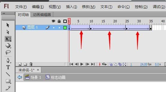 13、用同樣的方法將第1幀關鍵幀和第10幀關鍵幀創(chuàng)建傳統(tǒng)補間動畫。