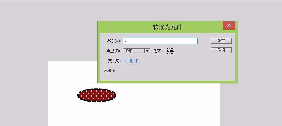 4、點擊轉換為元件選項,彈出轉換為元件對話框,修改名為1,如圖所示: