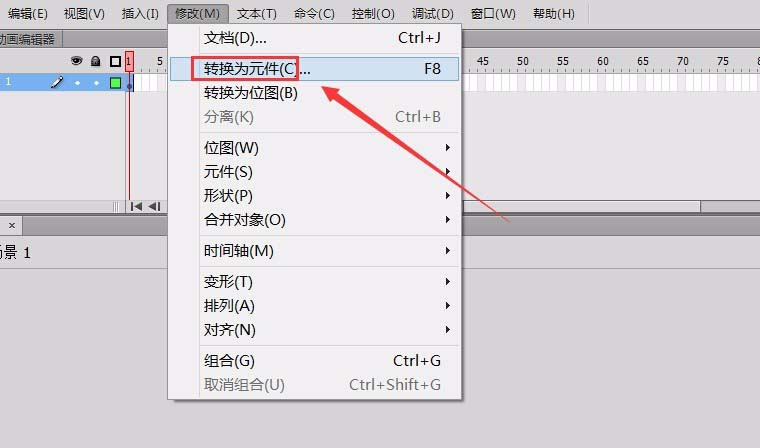 3、選擇這個橢圓,在上面的菜單里找到修改菜單,在其下拉菜單里找到轉換為元件選項,如圖所示: