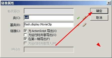 5、打開鏈接對話框,我們將類名設置為ball,然后點擊確定按鈕