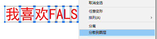4、單擊選擇工具將對應(yīng)的文字選中,并點擊菜單欄修改中的時間軸,選擇分散到圖層(也可以對著文字單擊鼠標(biāo)右鍵選擇,分散到圖層)。