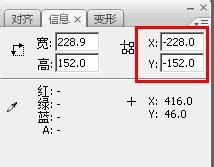 6、我們通過更改圖示中的數(shù)值來更改注冊點(diǎn)的位置,你可以先輸入如下的數(shù)值看看注冊點(diǎn)的位置,然后改變數(shù)值看看效果,這樣你就掌握了注冊點(diǎn)的意義了。