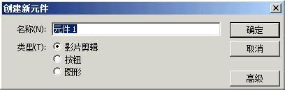 2、打開新建元件對話框,輸入元件的名稱,勾選影片剪輯,然后點(diǎn)擊確定按鈕