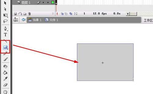 4、我們在元件中進(jìn)行繪畫,使用矩形工具,繪制一個(gè)矩形