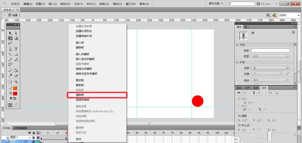 在時間軸中,可以對幀進行選擇、復制、剪切、粘貼等操作。