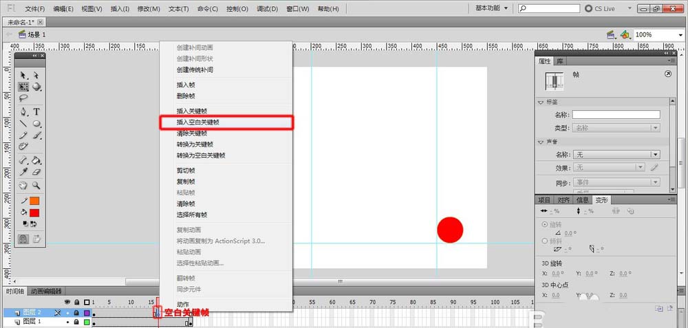 flash怎么使用幀關鍵幀空白關鍵幀?