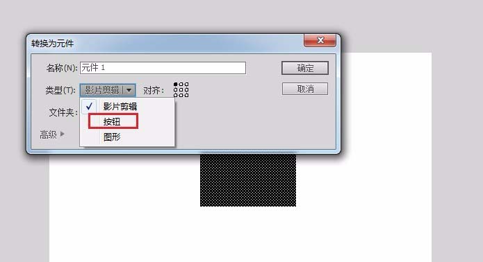 4、鼠標(biāo)點(diǎn)中黑矩形框,鼠標(biāo)右鍵,轉(zhuǎn)換為按鈕。