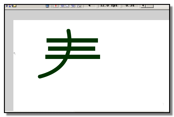 4、在圖層1的第4幀,按下F6插入關(guān)鍵幀;選取線條工具,設(shè)置筆觸顏色為墨綠色,筆觸高度為12.5的實(shí)線,在舞臺(tái)上畫出線條。選取選擇工具,把線條調(diào)彎。選中線條,把線條移到三條長方形上。這是“春”的第四筆,一撇。