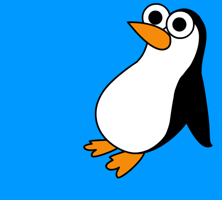23、將剛剛繪制的企鵝全部選擇,調節其大小,并將其放置到舞臺的中央,將舞臺的顏色設置為藍色,最后的圖形如圖所示: