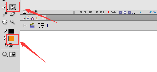 21、在工具箱內找到顏料工具,江天何從色設置為橘紅色,如圖所示: