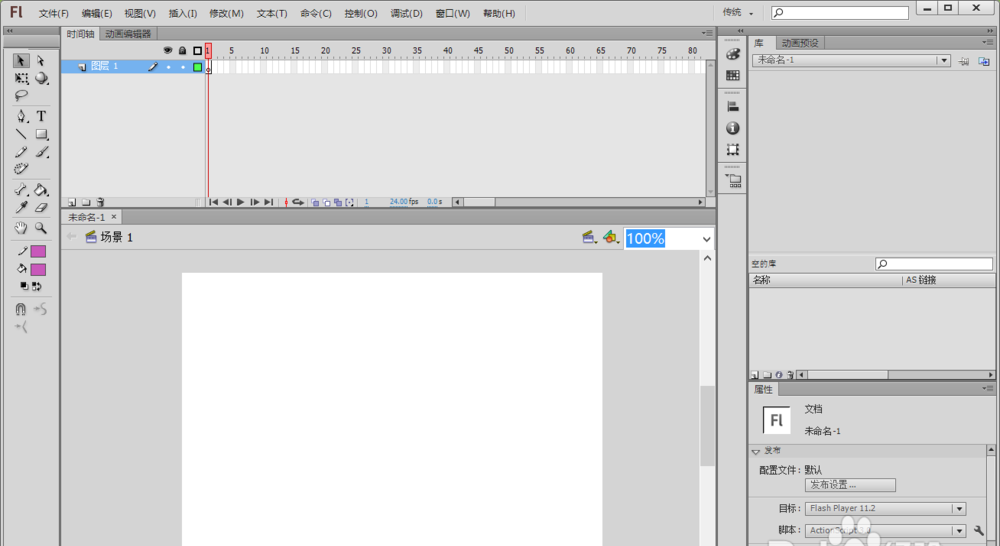 1、打開flash這款軟件,進入flash的操作界面,如圖所示: