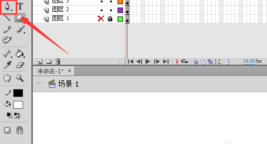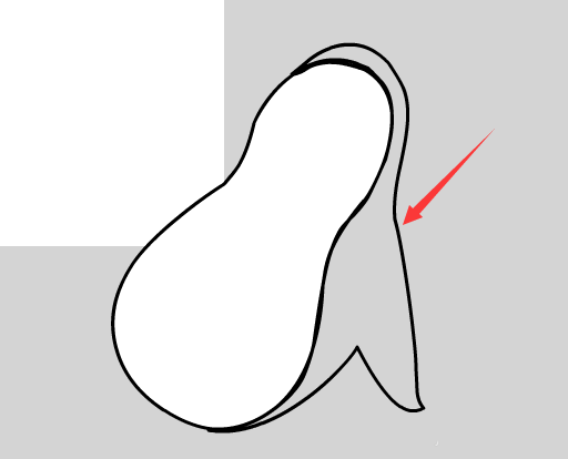 16、點擊鋼筆工具,在舞臺上繪制個圖形作為鼻子,如圖所示: