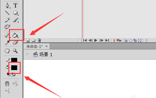 9、使用顏料工具,將剛剛繪制的圖形填上黑色,如圖所示: