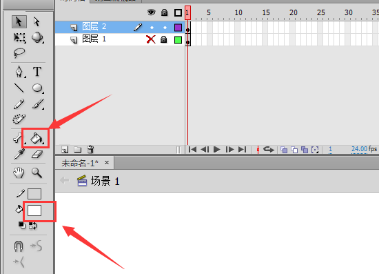 5、使用顏料工具將剛剛繪制的圖形填充上白色,如圖所示: