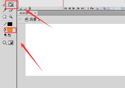 17、在工具箱內找到顏料桶工具,將填充色設置為橘紅色,如圖所示: