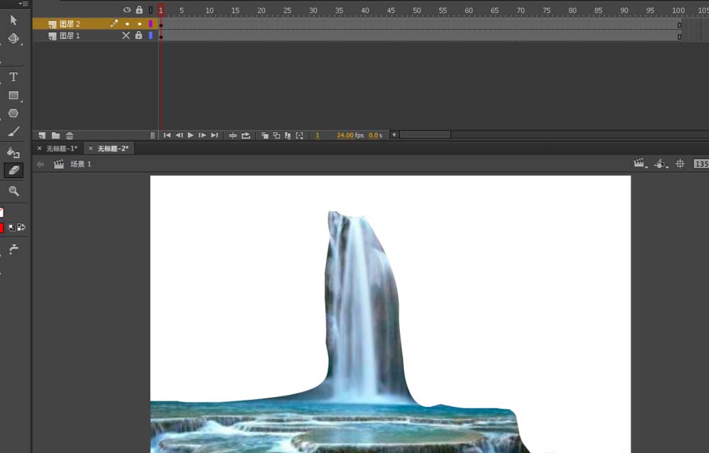 5、然后選擇套索工具或者橡皮擦,大家認為哪個好用用哪個,將沒有水流的地方delete掉,處理好就是這樣的