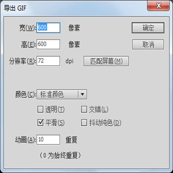 12、執行文件-導出-導出影片命令,在彈出的導出影片對話框中選擇gif格式,點擊確定后彈出設置大小對話框,在該對話框中設置大小為600*600,點擊確定按鈕。