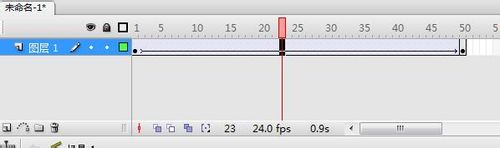 2、在圖層1的第50幀處,插入關鍵幀。如下圖所示: