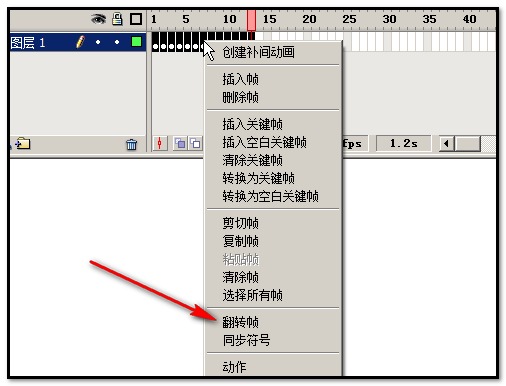 9、然后,把第一幀到最后一幀全選中;鼠標放在上面,右擊,彈出的菜單中點“翻轉幀”