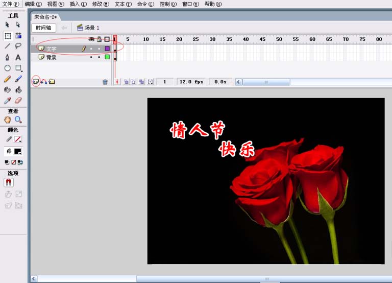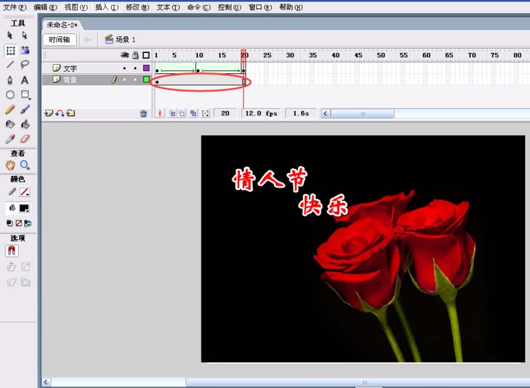 1、建立好flash文檔后,把賀卡的背景放上來。小編先以情人節(jié)賀卡為例子,背景圖片來自于網(wǎng)上。