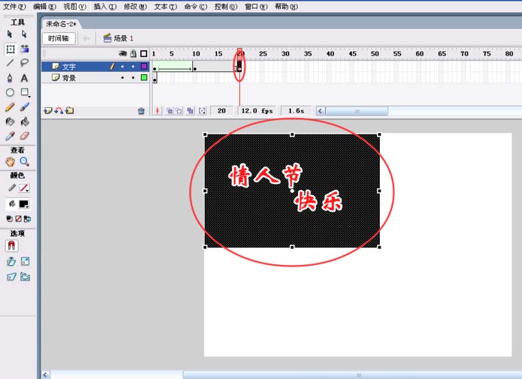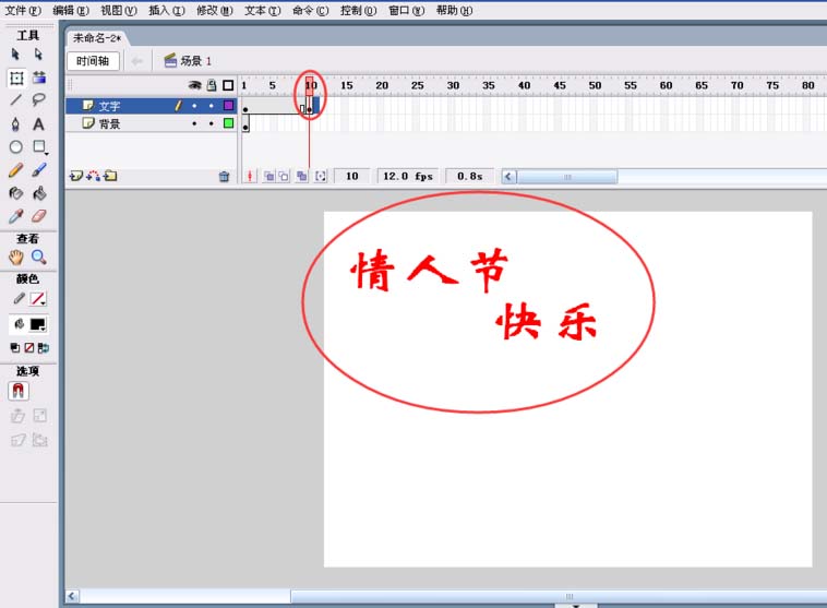 3、然后在第10幀插入關(guān)健幀,并把祝詞調(diào)大。