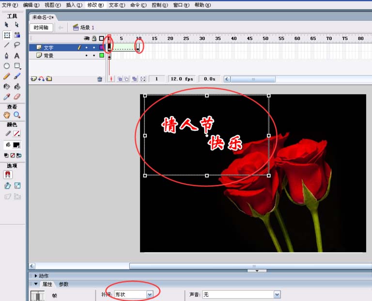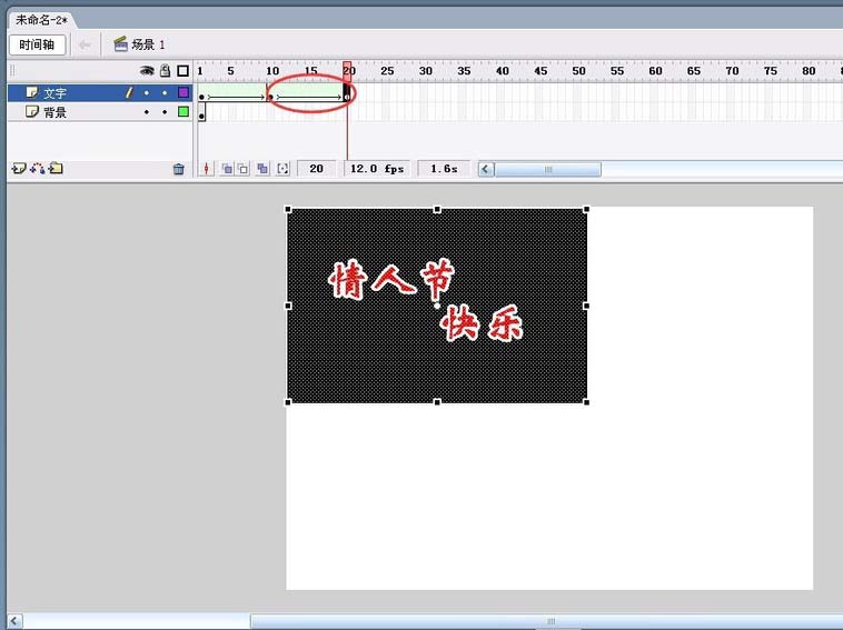 6、一樣是在中間創(chuàng)建形狀部件動(dòng)畫,并把第10幀和第20幀的文字圖片都分離。
