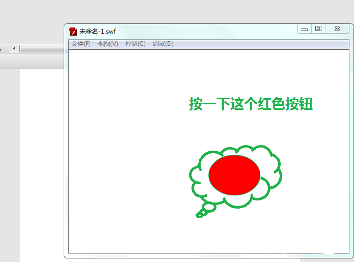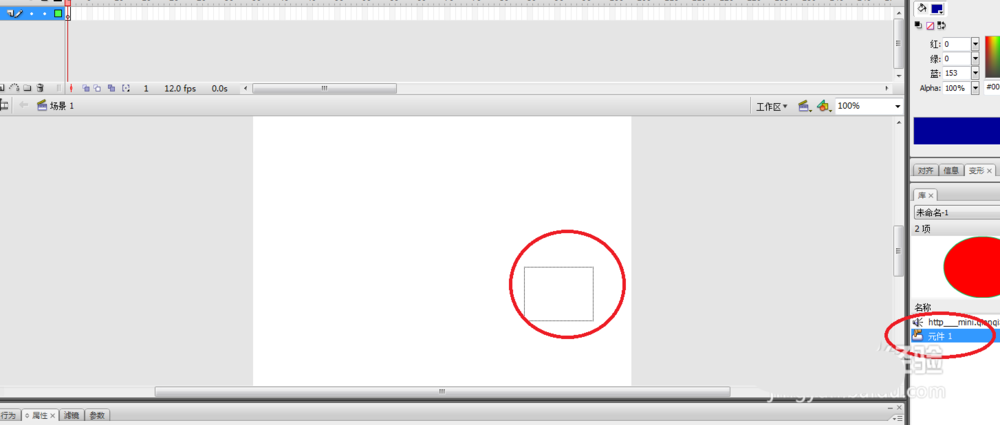 8、最后返回場景后,就是點擊一下”場景1“,然后將創建好的按鈕元件從”庫“面板中拖至舞臺,然后按下快捷鍵”Ctrl+Enter"鍵,在彈出的對話框中點一下紅色的橢圓按鈕就能播放之前的聲音了。大家快點試試吧。