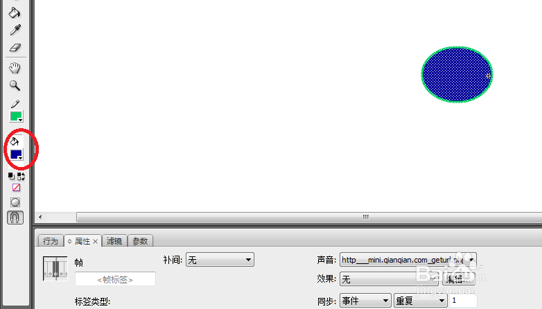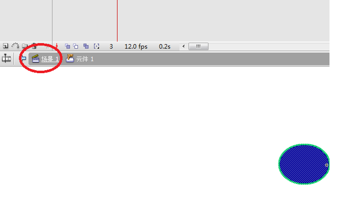 7、最后把舞臺中的橢圓圖案顏色改成藍色,如圖所示。