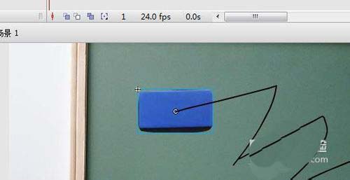 6、選中黑板擦,將其移動到引導線的一個端點上,將黑板擦的中心點對齊到路徑的端點處。如下圖所示: