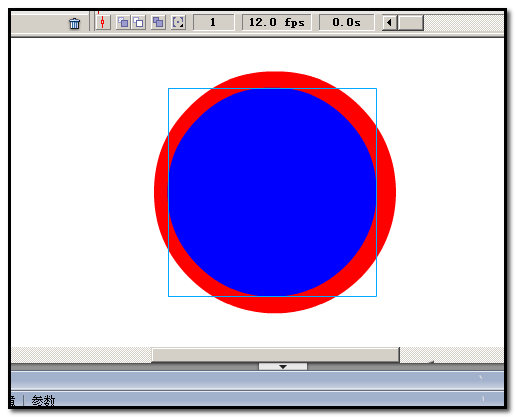 5、在工具欄這里點下橢圓工具,把筆觸顏色和填充顏色設置為藍色。然后,按住鍵盤的SHIFT鍵,在舞臺上畫出一個小于紅色大圓的藍色正圓。