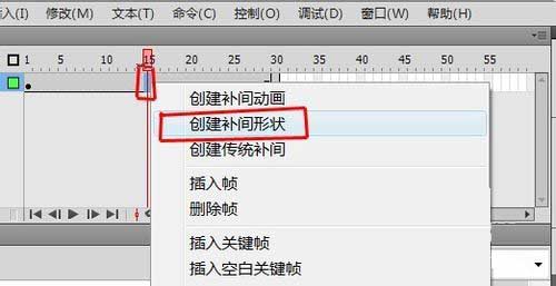 6、選中“圖層1”第1幀至第30幀中的任意一幀,單擊右鍵,在彈出的菜單中選擇“創建補間形狀”。