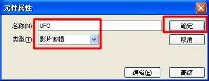 1、打開Flash,點擊“插入”->“影片剪輯”項,創建一個名為“UFO”的影片剪輯。
