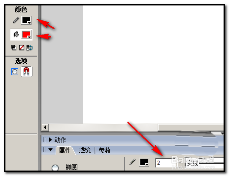 1、打開flash,新建flash文檔。在圖層1上,畫一個橢圓,大小自定。在工具欄上點下橢圓工具,然后,設(shè)置橢圓的參數(shù),橢圓的填充顏色為紅色;筆觸顏色是黑色,也就是圓的邊線;筆觸高度設(shè)置為2。