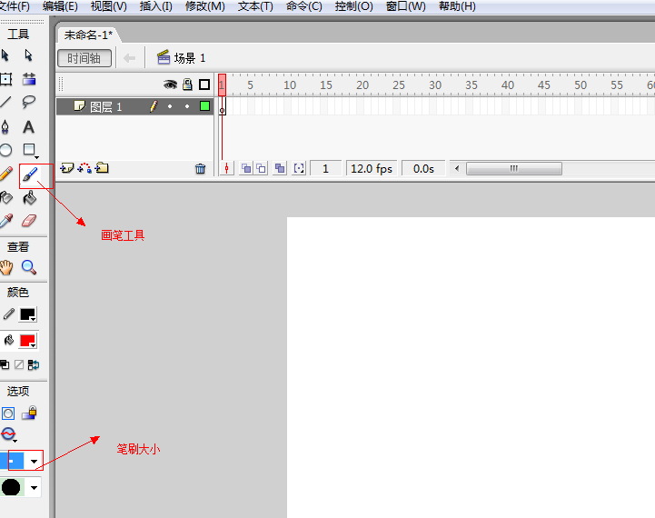 2、選擇畫筆工具,顏色,調節(jié)筆刷大小。