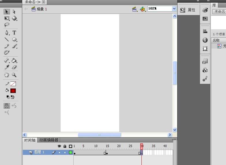 5、選擇30幀(可以自己選擇)按F7(插入空白幀),選擇第一幀,按ctrl+c復制,在選擇30幀,按ctrl+shift+v(原位置粘貼)