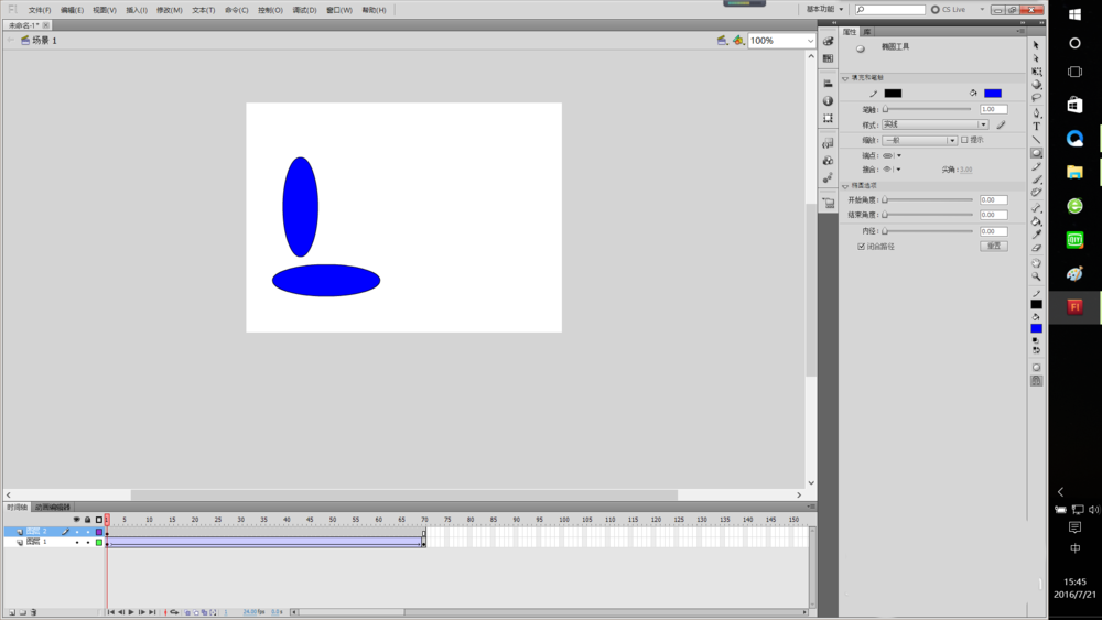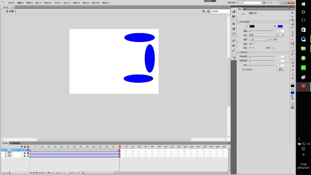 7、第二圖層,我也是制作一個傳統補間動畫,所以步驟對應前面的1~6個步驟,而第三個圖層,我要做的是個形狀補間動畫