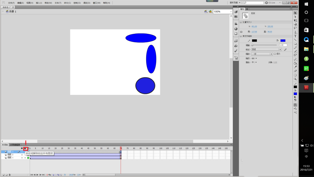 11、下面要制作第三圖層的形狀補間,需要選中圖形,在這么多圖層中,往往會不小心選到其他圖層的元件或者圖形,所以需要鎖定其他圖層,點擊“鎖頭”,再次點擊第三圖層的“鎖頭”