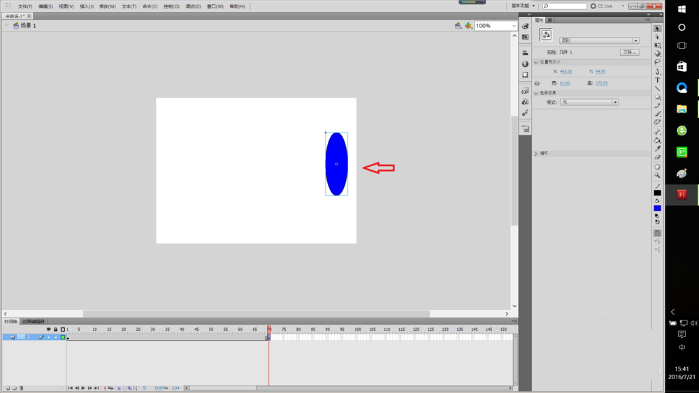 4、在最后一幀上,將元件拖曳到你所要的位置上