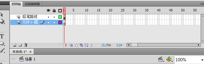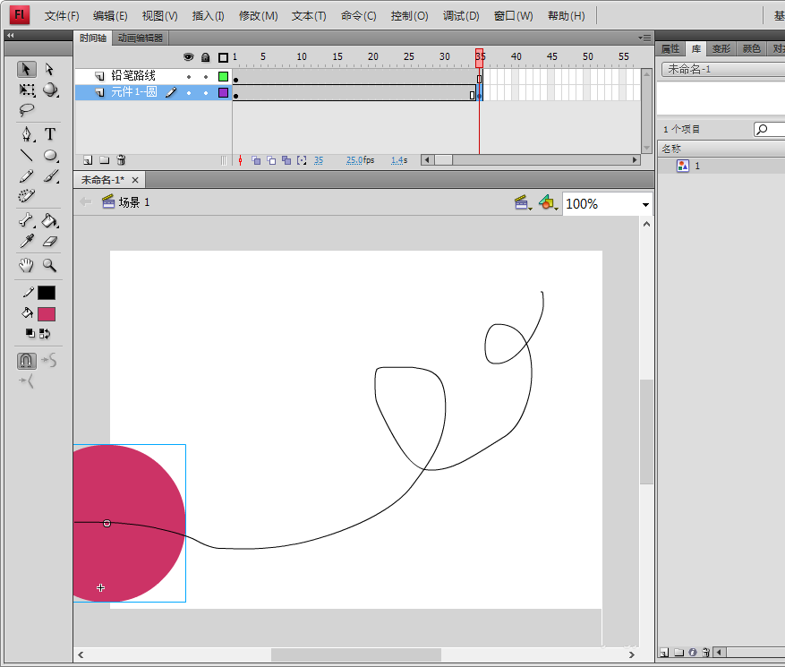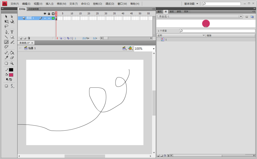 3、回到場景1,利用鉛筆工具,隨意畫一條路徑