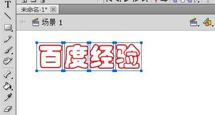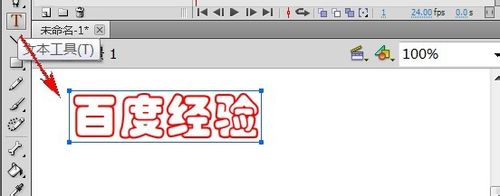 3、在工具欄里選擇“文本工具”,在舞臺上輸入文字“百度經驗”