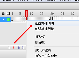 8、最后在兩關鍵楨之間右擊,創建”補間動畫“。