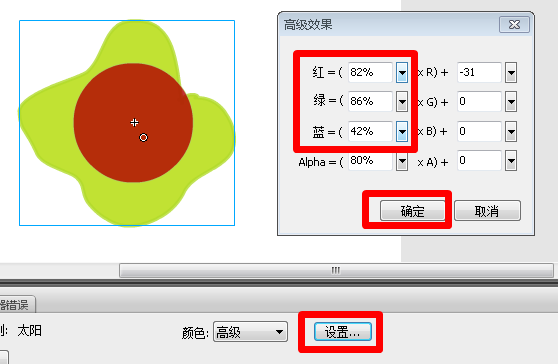 7、然后點擊“設置”按鈕,在彈出的“高級效果”面板中,將元件進行適當的設置。
