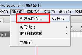 1、打開Flash,創建一個空白文件。點擊“插入”->“新建元件”項。接著輸入元件的名稱,點擊“確定”完成創建操作。