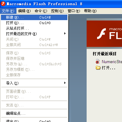 1、打開Flash 8 Professional,按圖點【新建】,在彈出對話框中選【Flash文檔】。