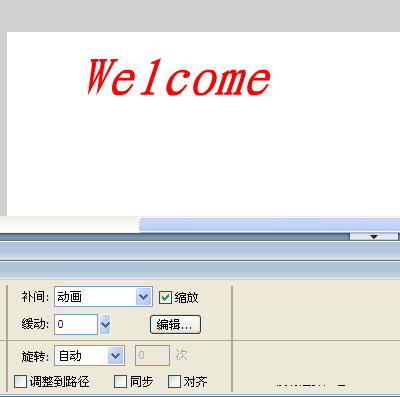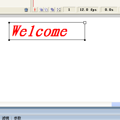 4、先編輯welcome圖層,選中welcome層的第一幀,選取工具箱的文本工具。然后,在舞臺下方的屬性檢查器中設置文字的屬性,并在舞臺上輸入"Welcome"字樣。