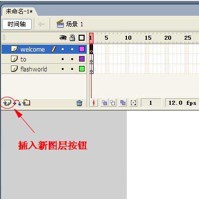 3、在時間軸面板上點擊【插入圖層】按鈕,并雙擊各圖層名稱,改成新的名稱。
