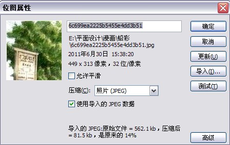 5、點(diǎn)擊修改——文檔,彈出如下對話框 ,我們把尺寸改成剛才位圖的尺寸。