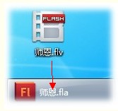 3、拖動FLV文件到桌面底部的Flash文件圖標上。先將Flash文件最小化,再將FLV文件拖放到桌面底部的Flash文件圖標上。此時,Flash文件窗口會自動彈起來。正在拖放的FLV文件圖標會顯示出來。
