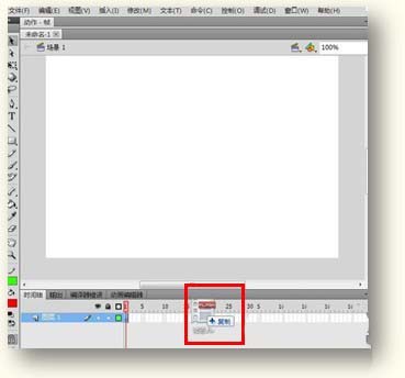 6、 在Flash窗口任何位置放下FLV文件移動鼠標到Flash文件窗口內部。鼠標在界面不同位置,它的樣子會有所不同,如果處于時間軸上,變成“復制”形態:如果停在頂部菜單附近,會變成“移動”形態:如果停在舞臺上,形態就里一個虛線框和一個加號:但無論是那種形態都無所謂,因為你可以在窗口的任何地方放下FLV文件,從而打開導入視頻任務窗口。