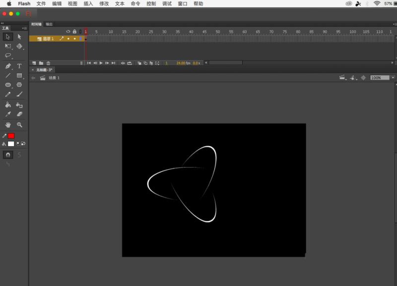 5、再次回到舞臺,新建元件,這次是影片剪輯,將元件2拖進去,,新建圖層,畫一個橢圓,不要填充色,開一個缺口